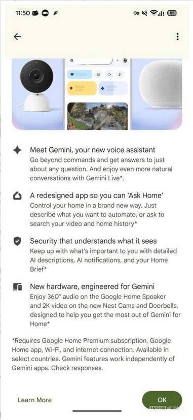 Home Brief non sarà una funzionalità gratuita: il codice dell’app lo collega strettamente a Google Home Premium (il nuovo nome di Nest Aware), che già include funzioni avanzate per videocamere e sensori Nest, e che ora integra anche Gemini Live e Ask Home. Sarà possibile attivare una prova gratuita (probabilmente di 30 giorni, come per Nest Aware) prima di sottoscrivere l’abbonamento.